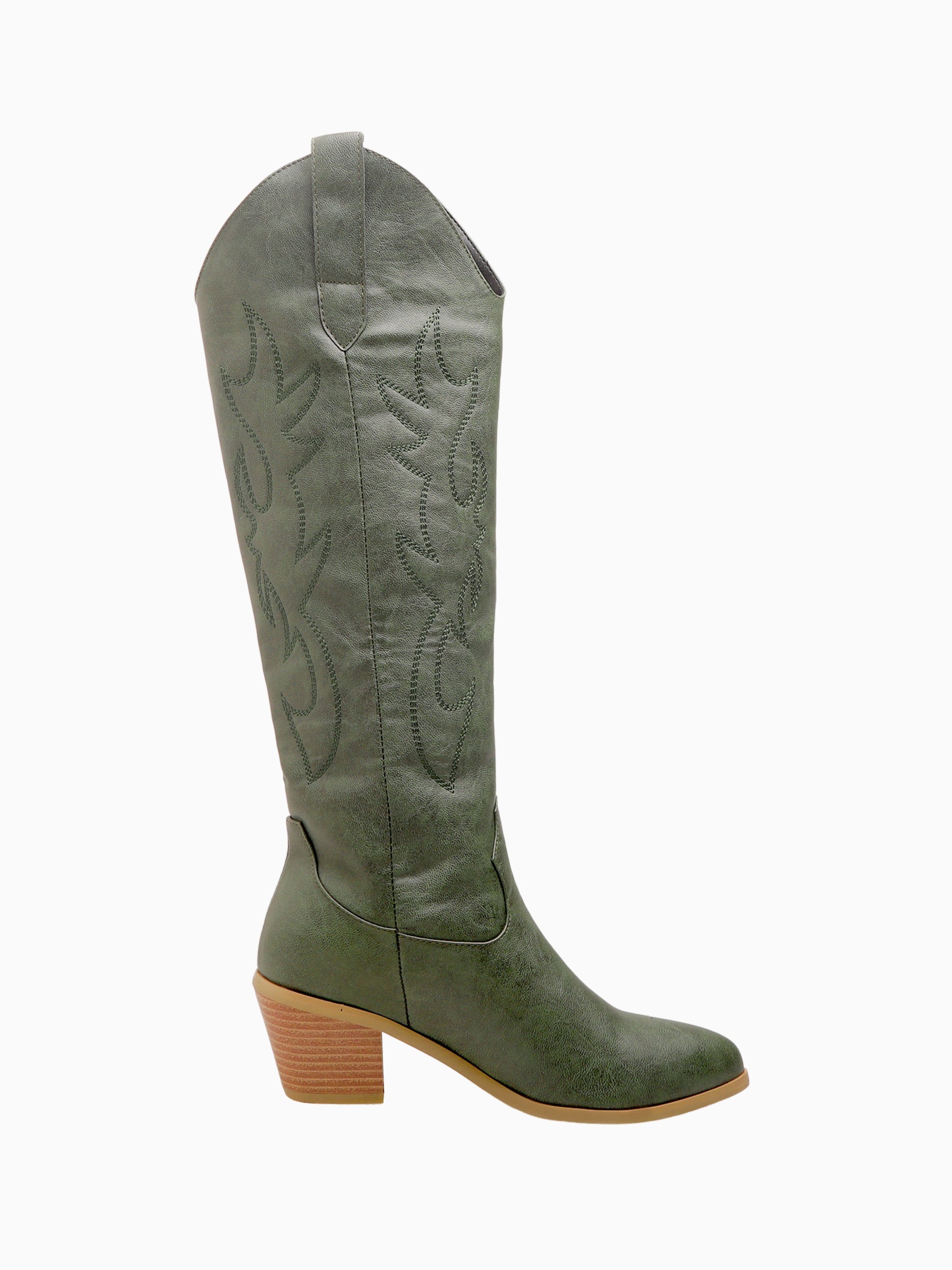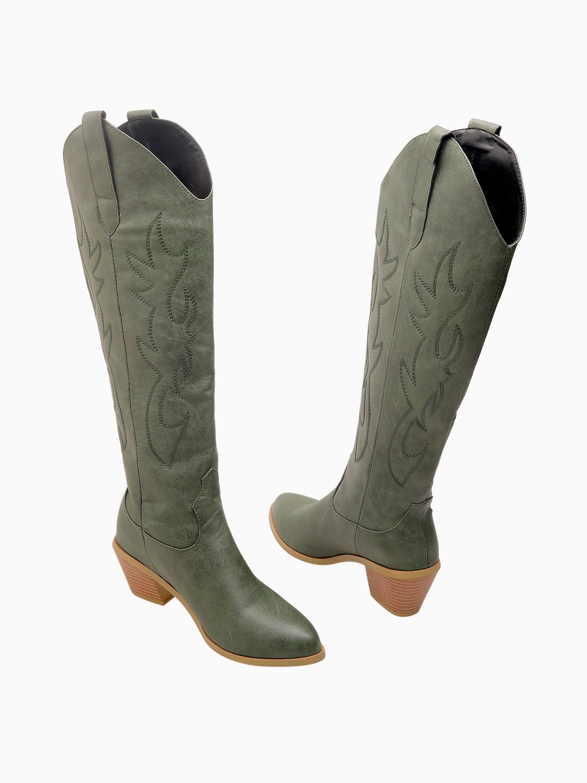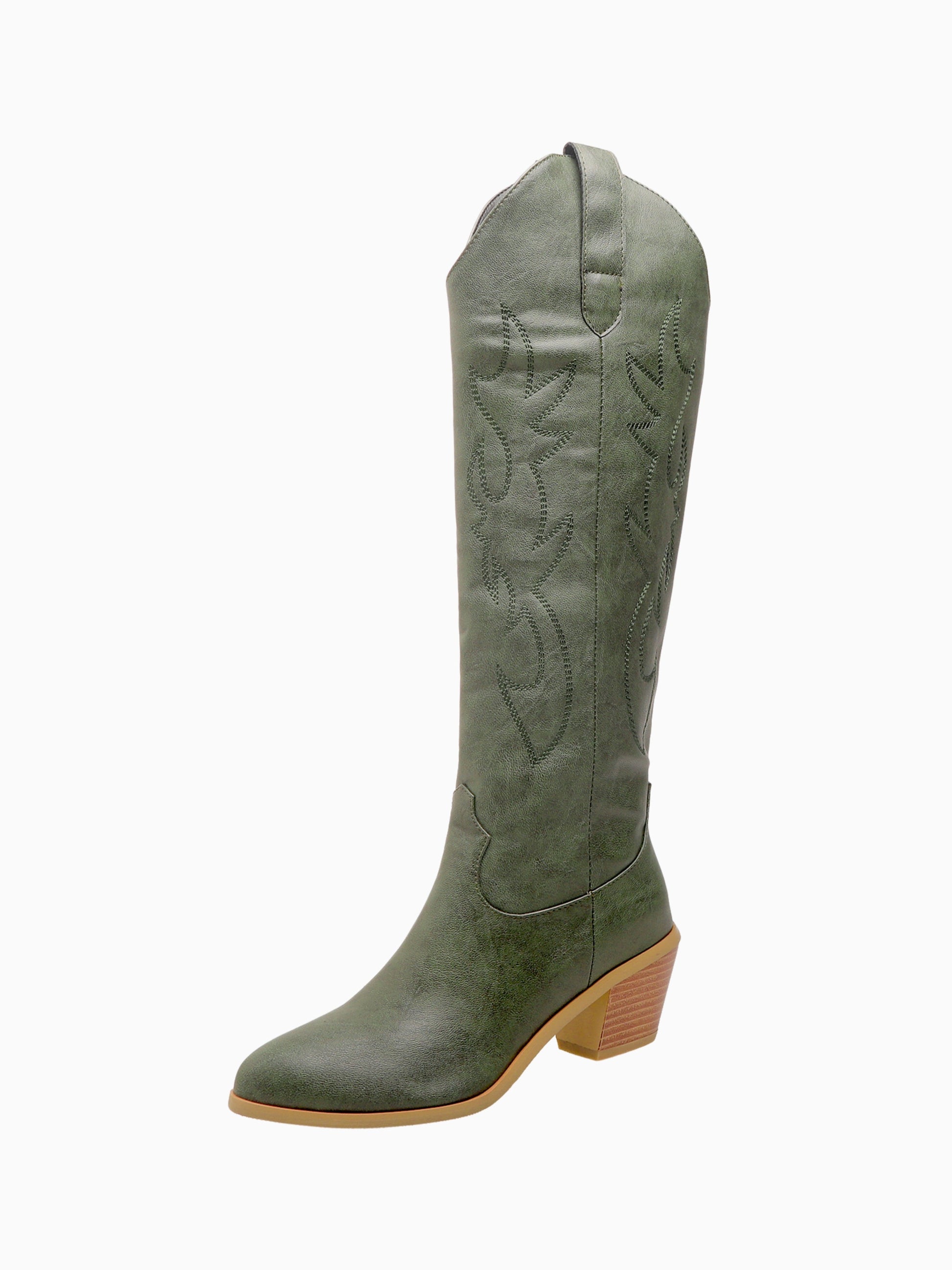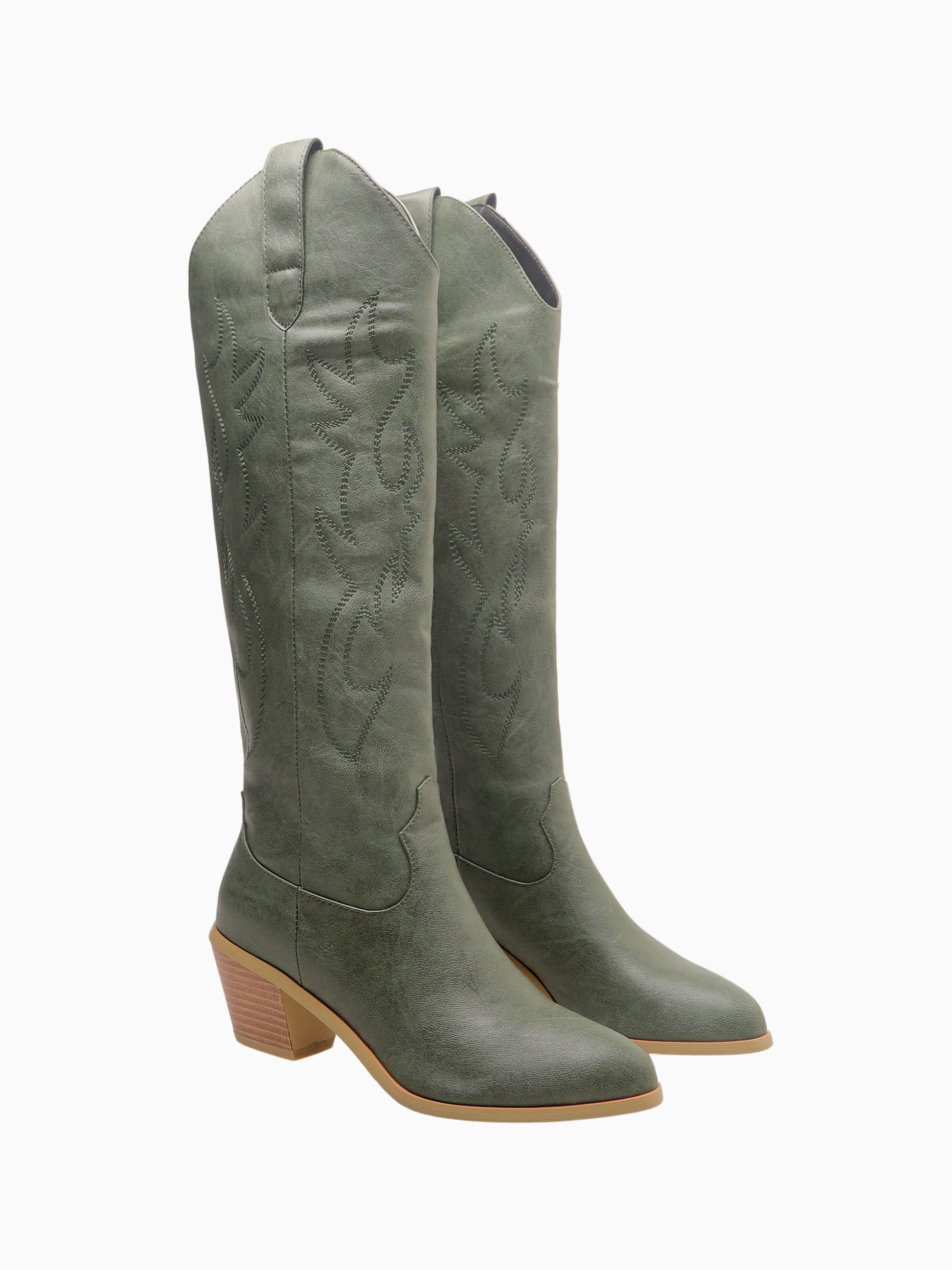 Minimalist Knee-High Olive Green Cowgirl Boots