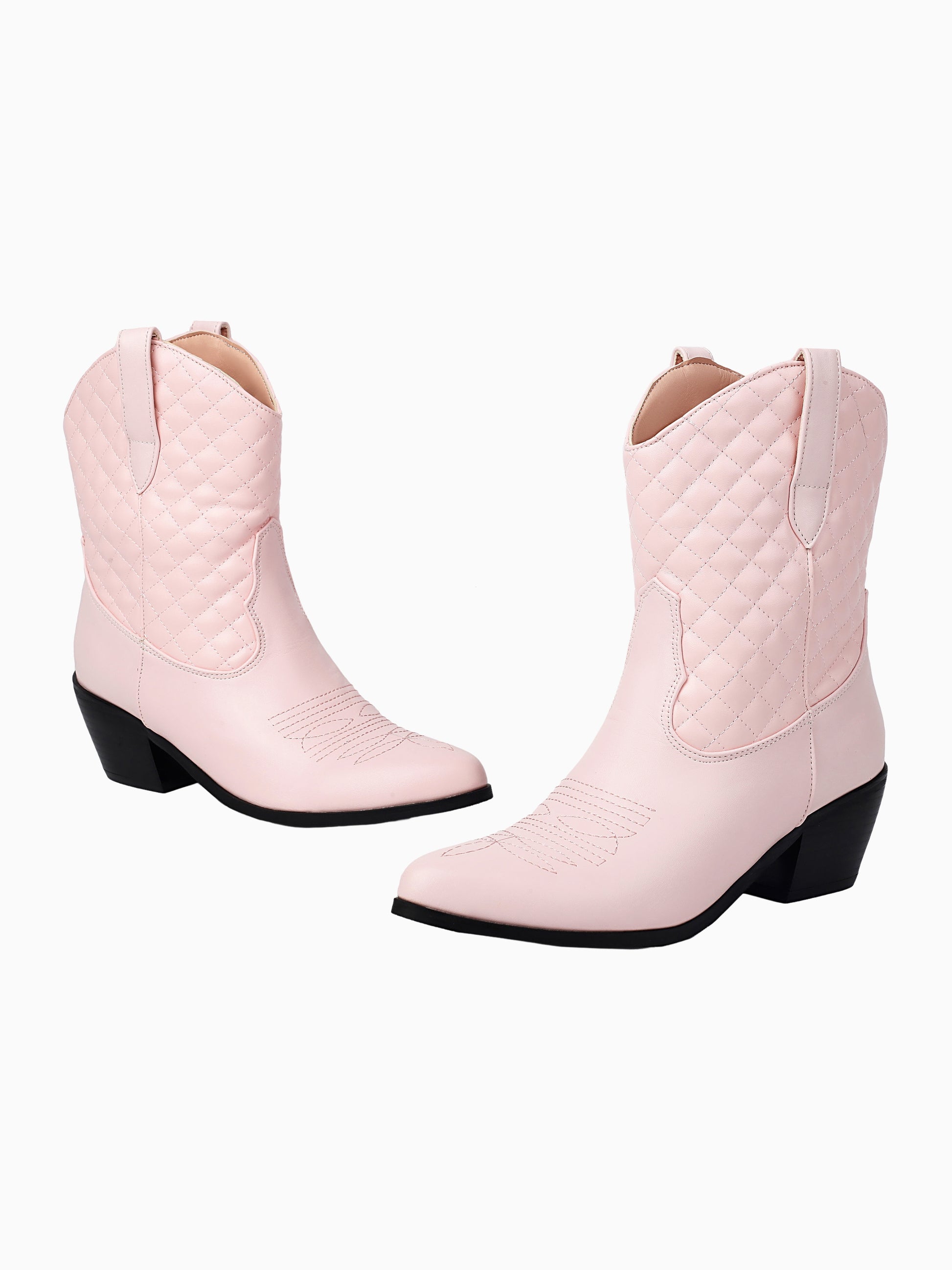 Quilted Classic Light Pink Cowgirl Ankle Boots for Women