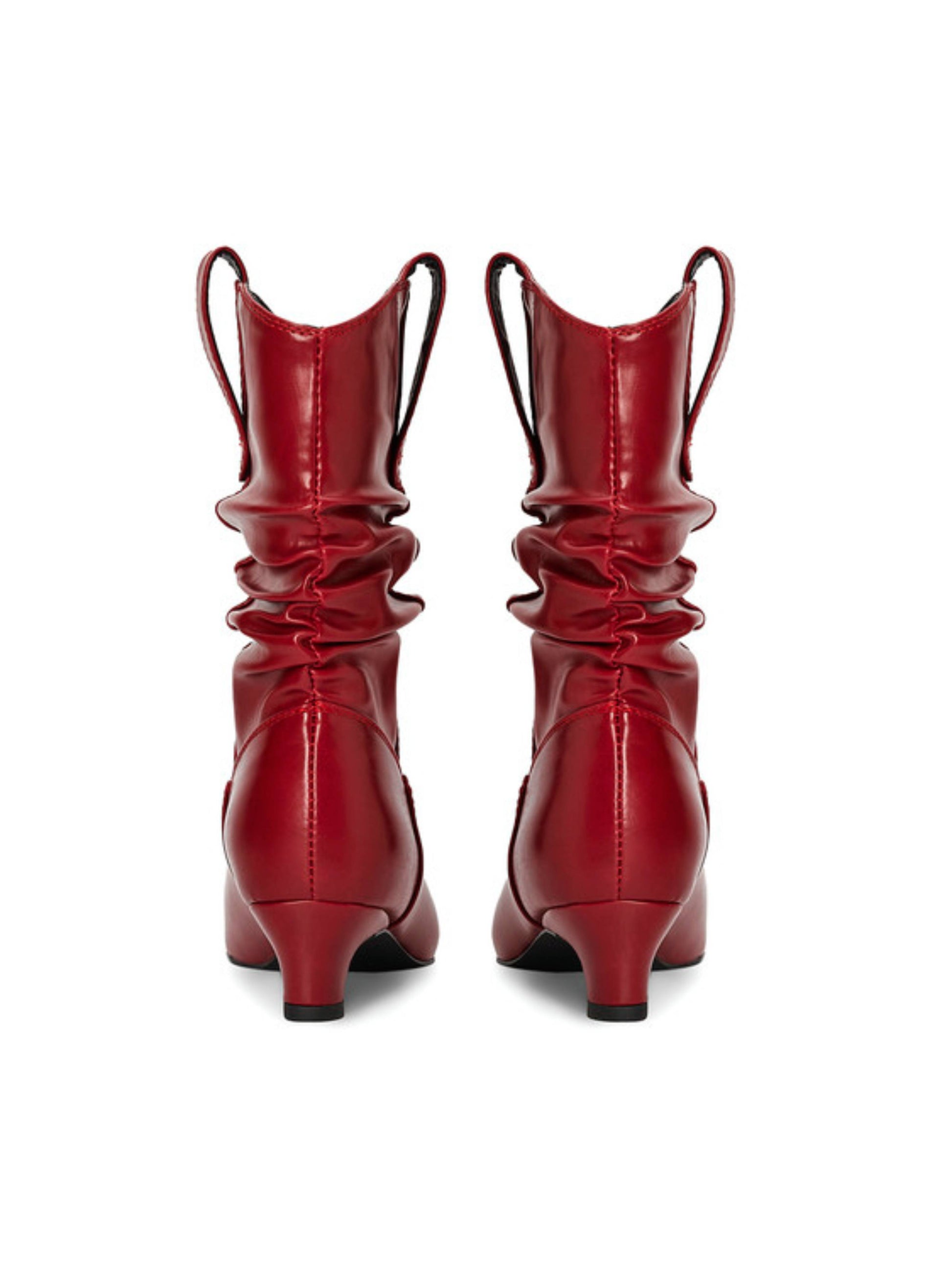 Red Winkled Slouchy Mid Calf Cowgirl Kitten Heel Boots