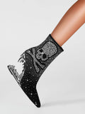 Rhinestone Skeleton Black and Silver Teeth Heel Western Short Boots