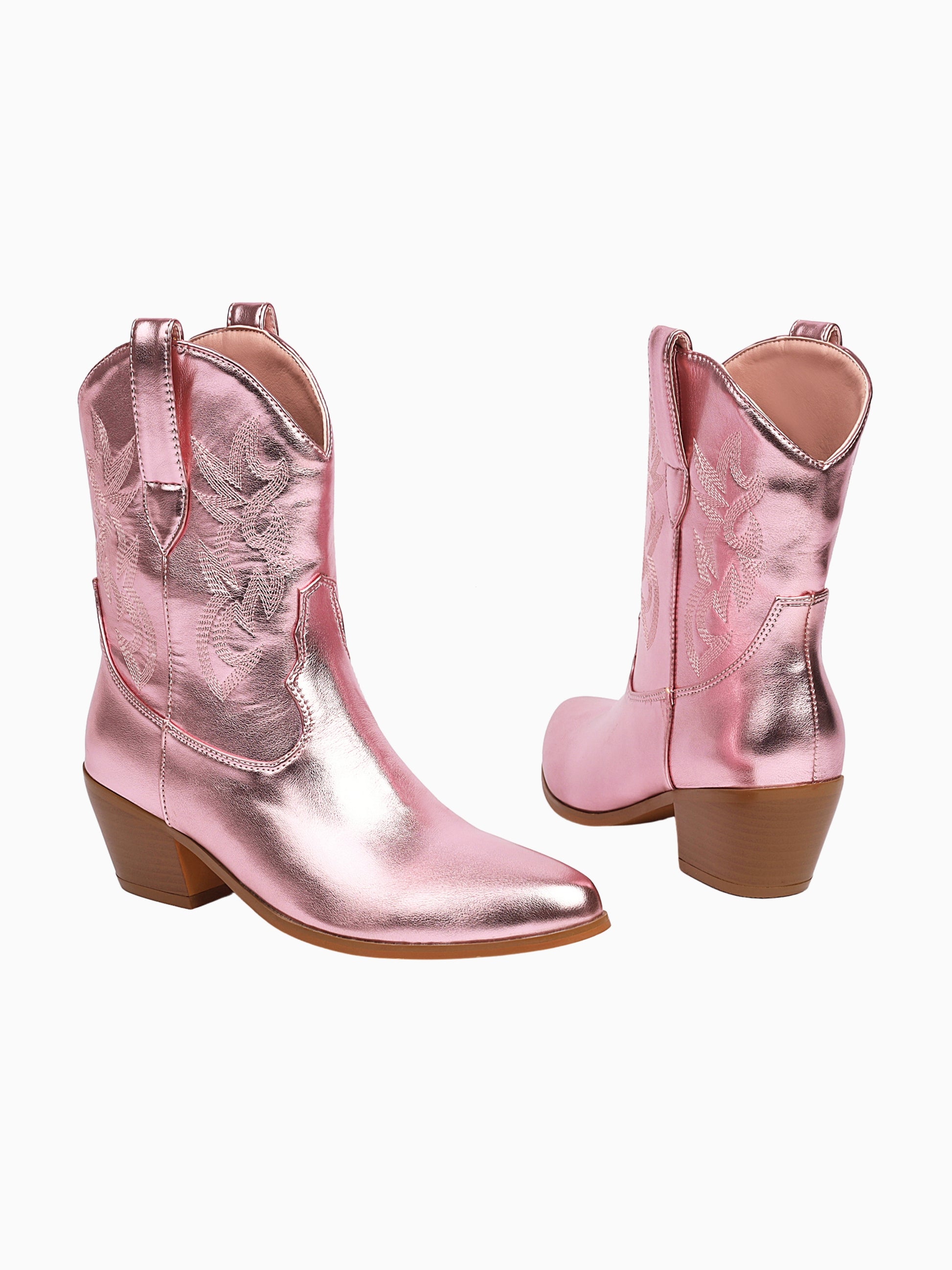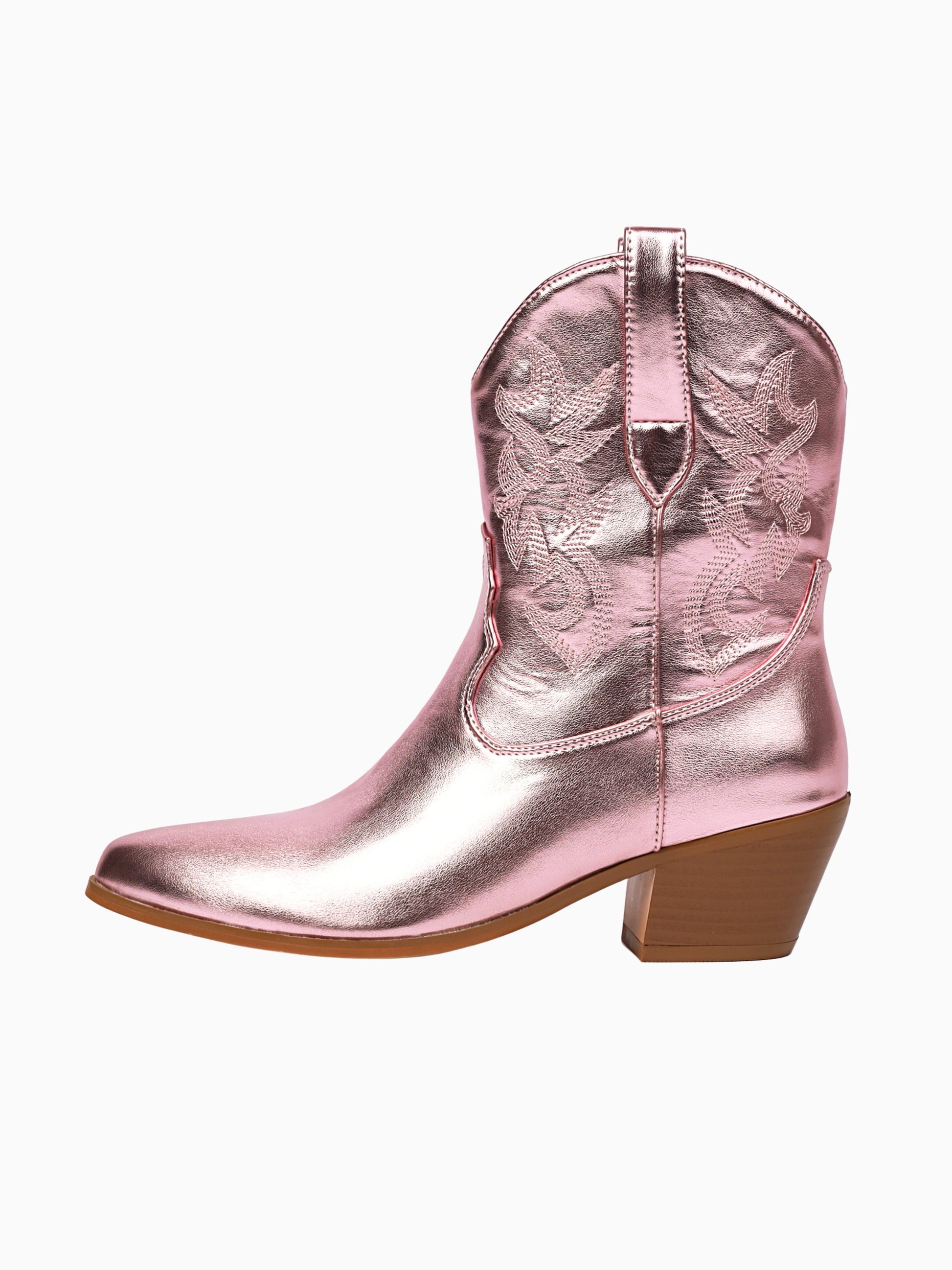 Rose Gold Ankle-Cut Pink Cowgirl Ankle Booties