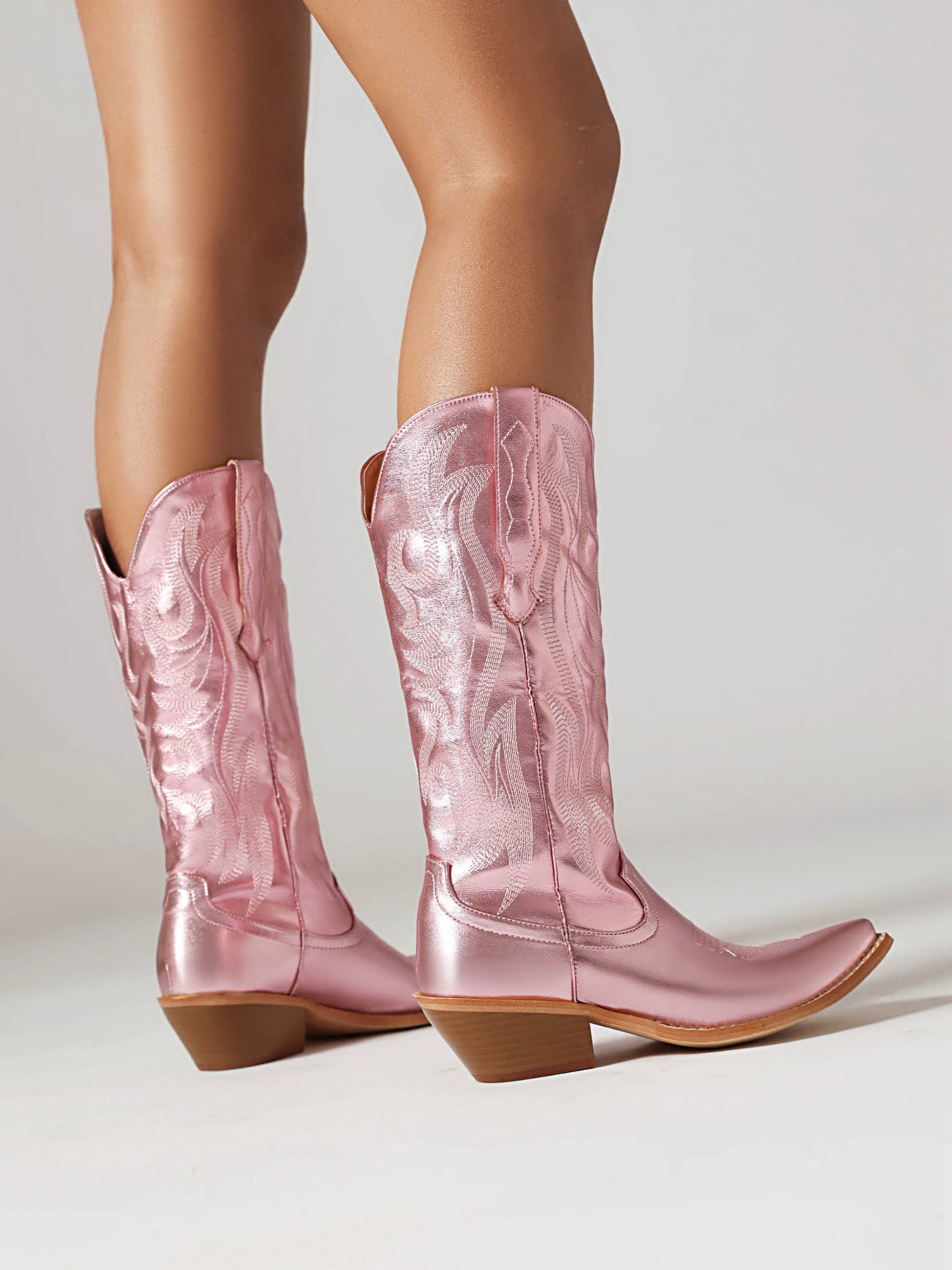 Metallic Pink Embroidered Snip Toe Cowgirl Boots Women