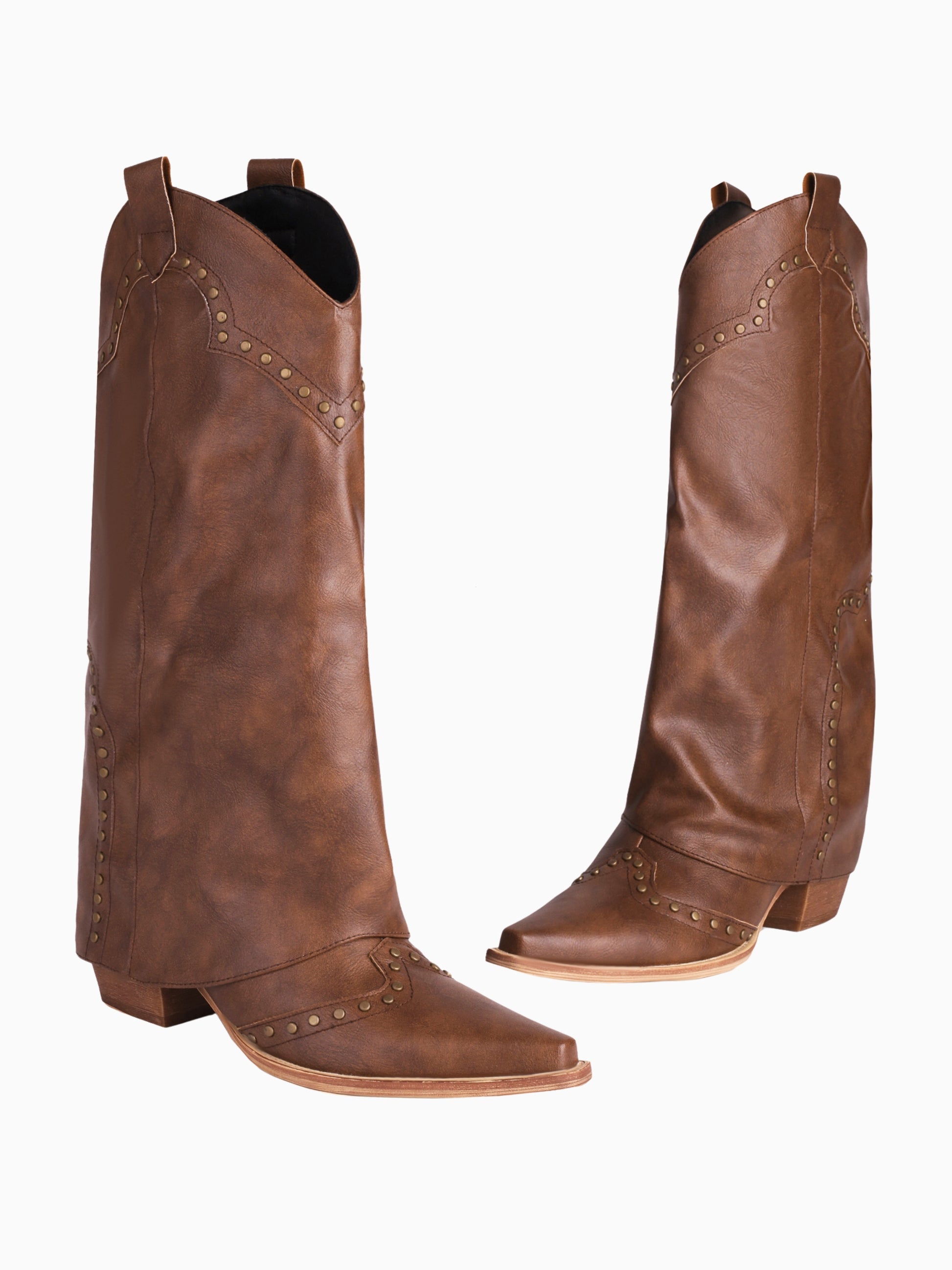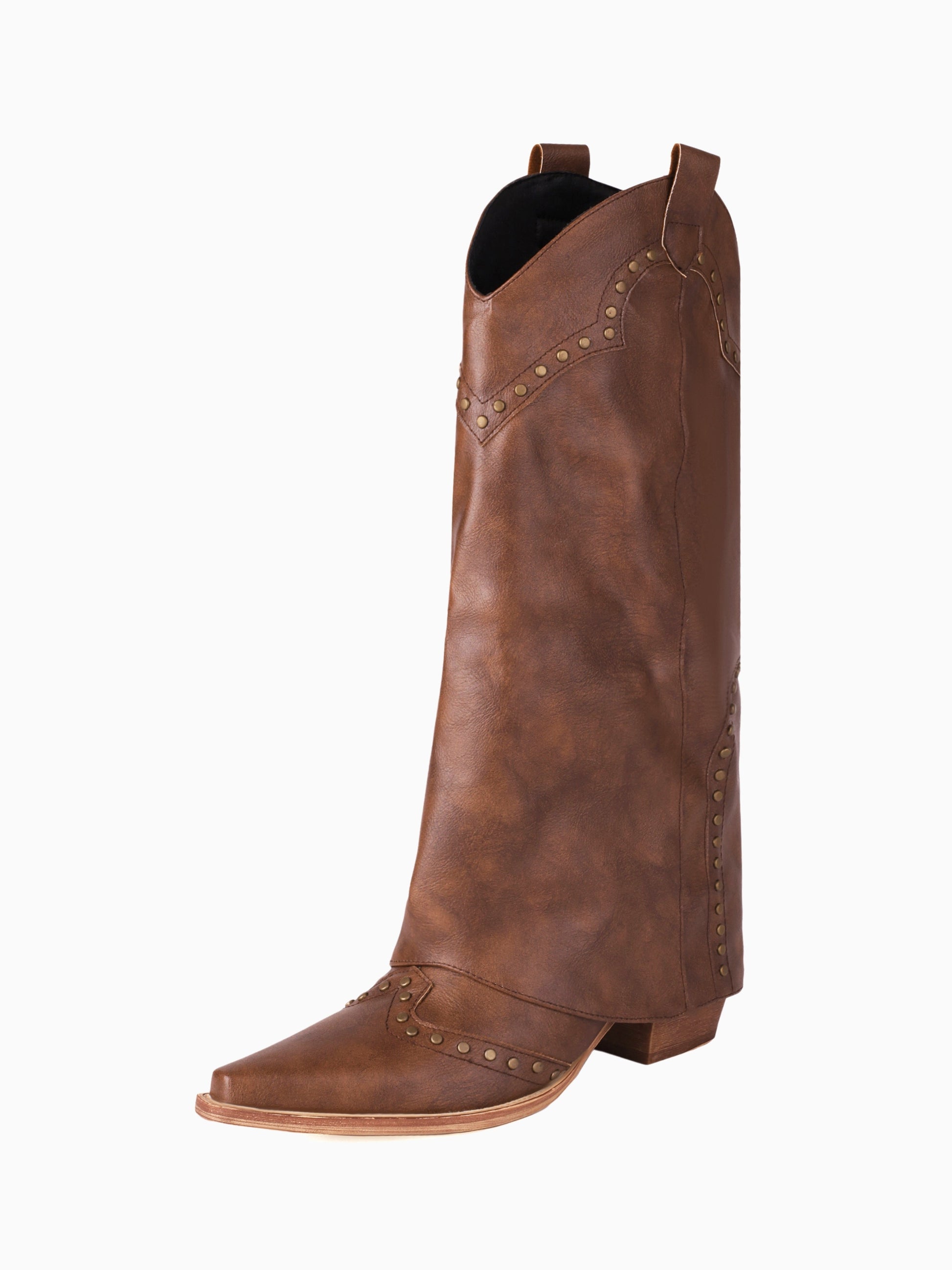 Rustic Rivet Mid Calf Fold-Over Cowgirl Boots