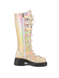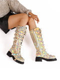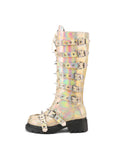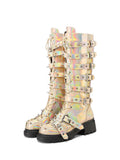 Shining Gold Buckled Belt Long Gothic Boots with Rivets