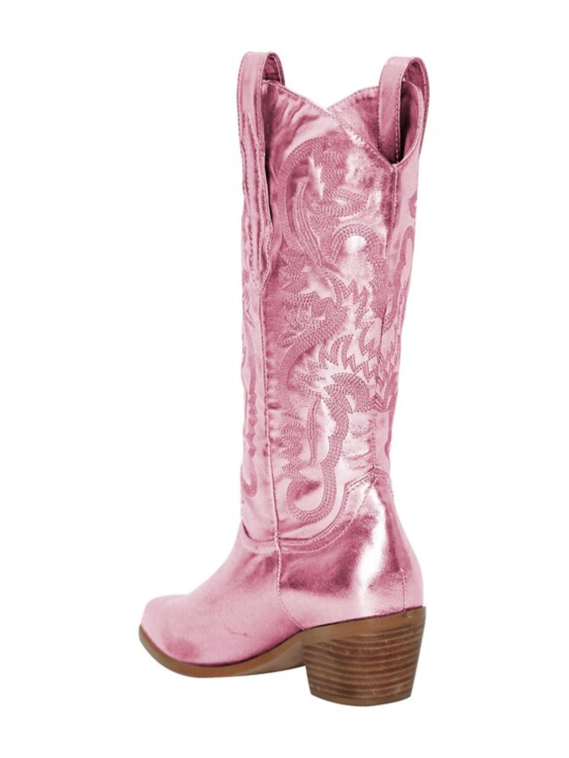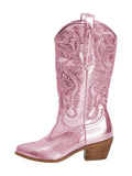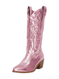 Shining Metallic Pink Cowgirl Boots Mid Calf