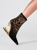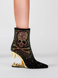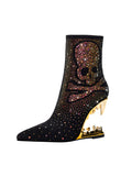 Short Black and Gold Teeth High Heel Rhinestone Skeleton Cowgirl Boots