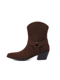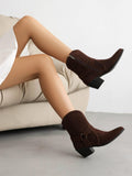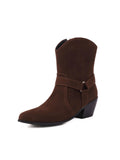 Short dark brown cowgirl boots featuring classic snip toe design and ankle-length construction. Versatile western boots perfect for everyday wear, country fashion, and casual outfits, combining timeless dark brown color with authentic cowgirl styling and comfortable fit.