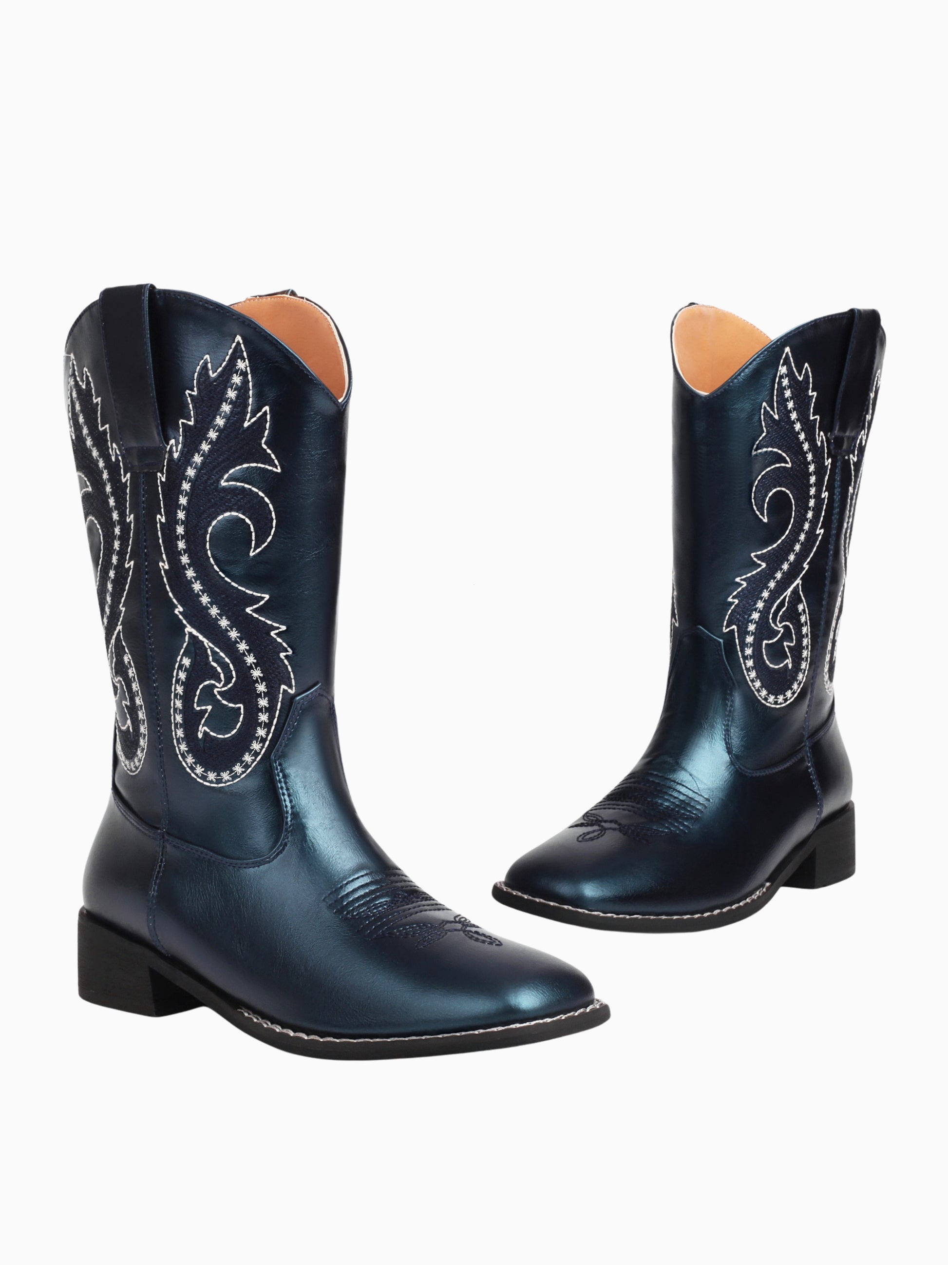Starlight Metallic Navy Blue Mid Calf Cowgirl Boots