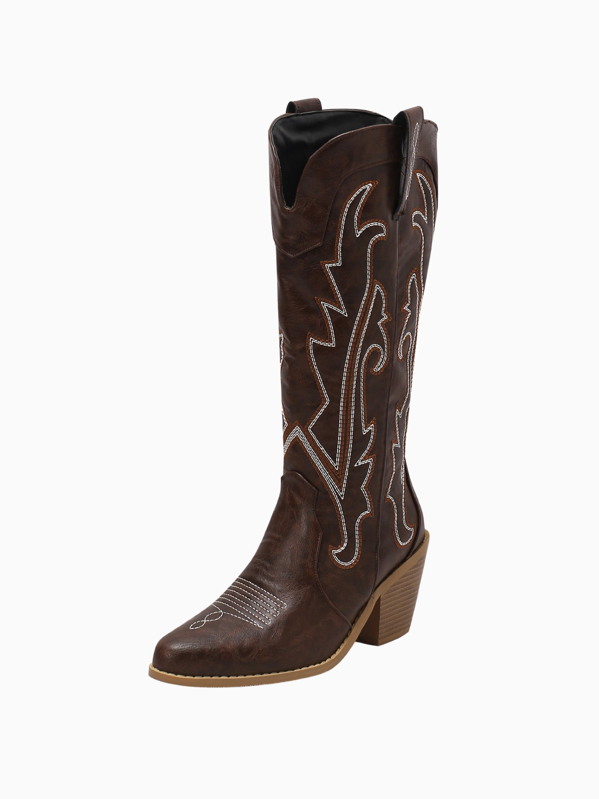 Dark Brown Embroidered Storm Rider High Heel Cowgirl Boots