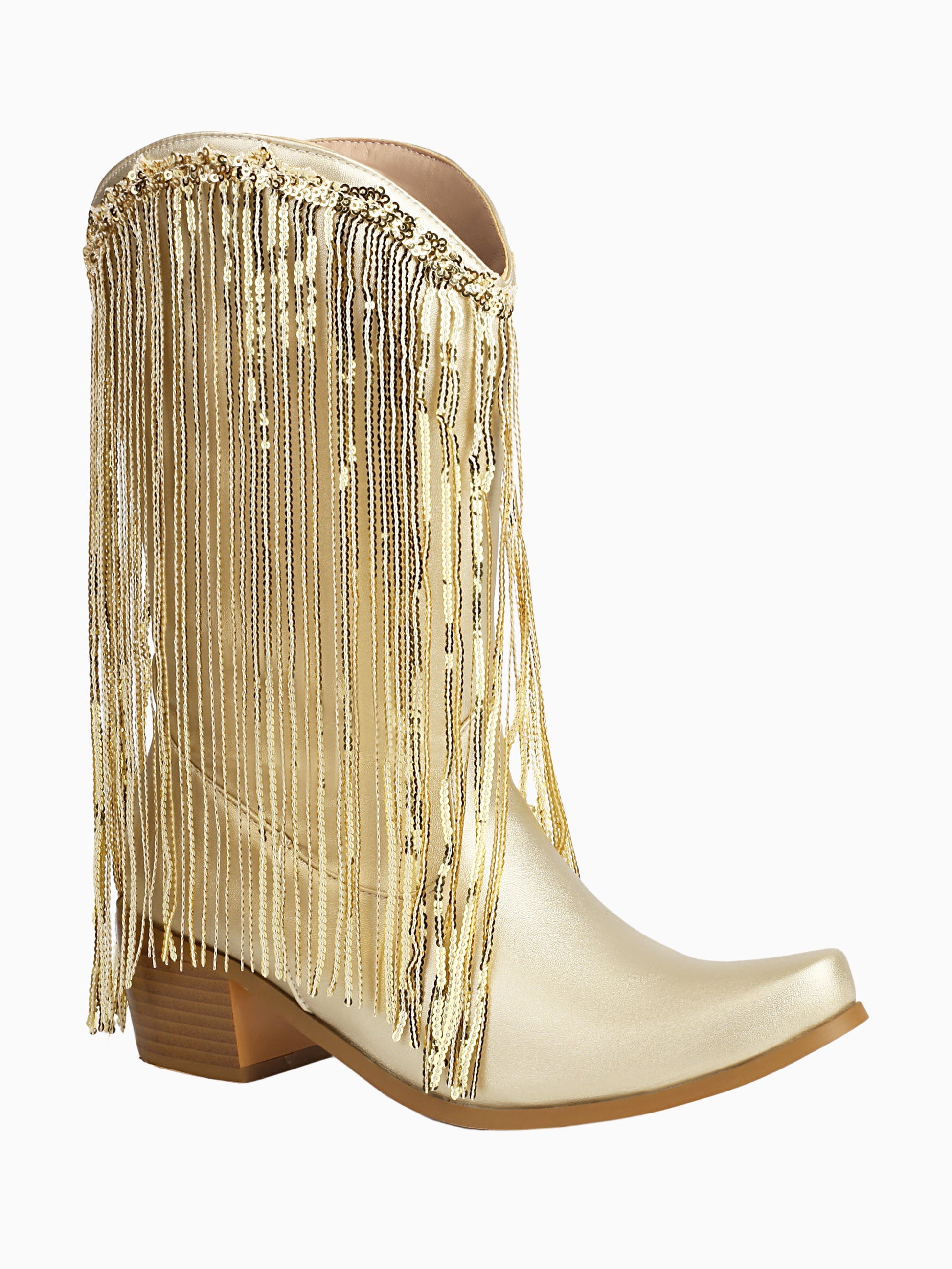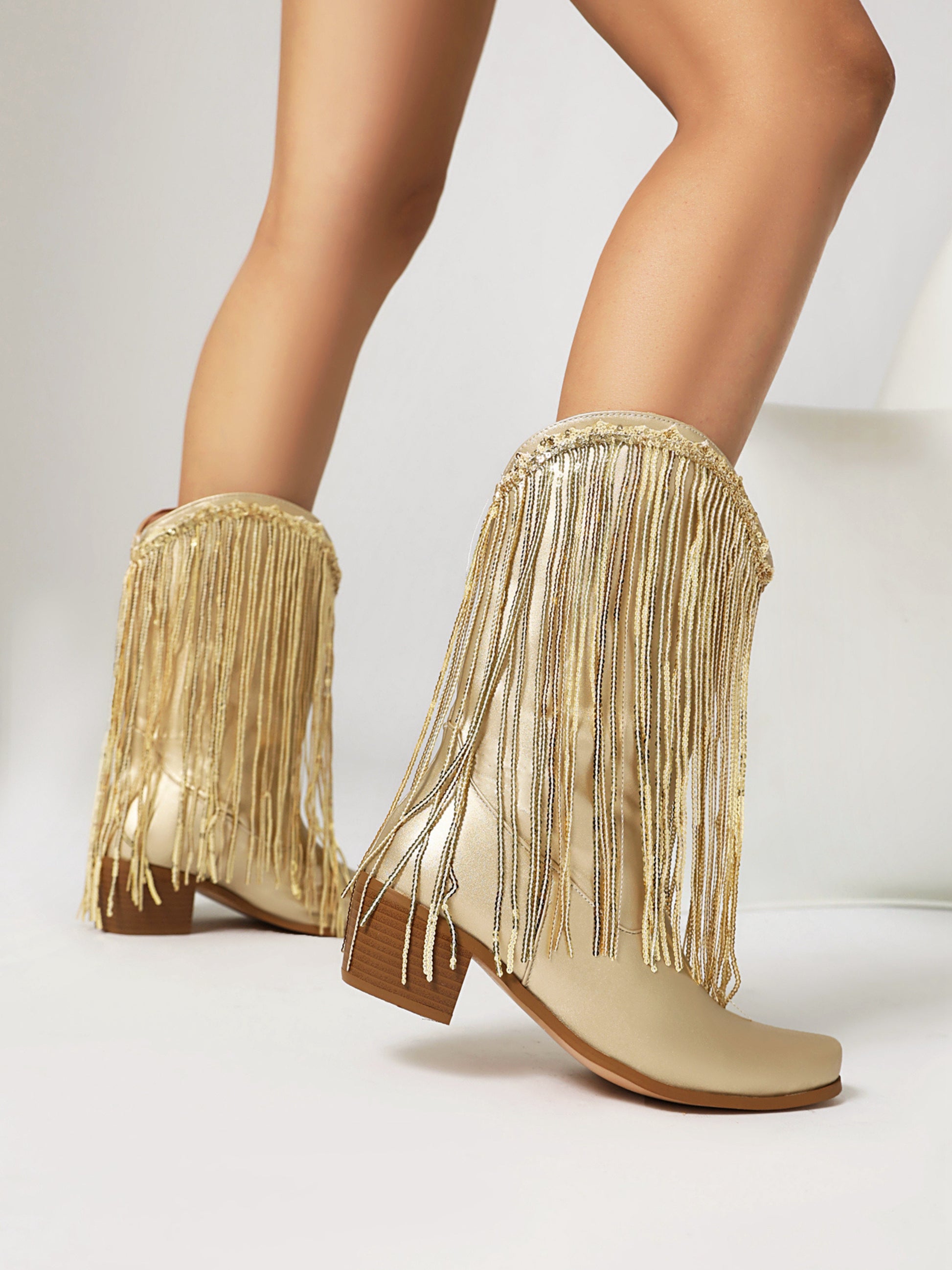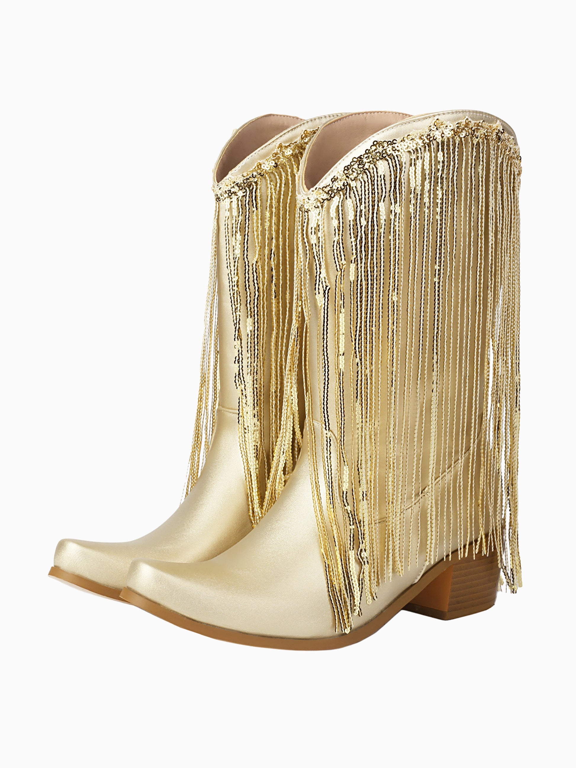 Sunset Fringe Shimmer Gold Cowgirl Boots
