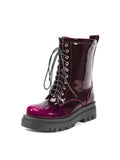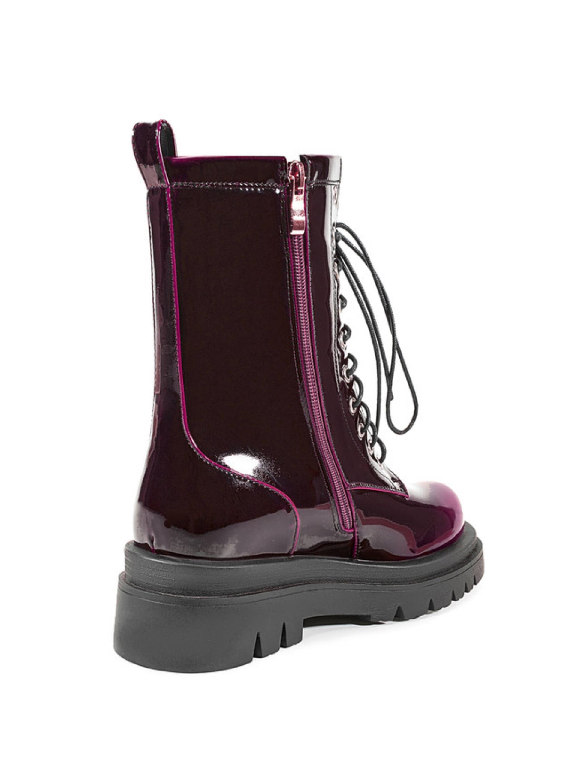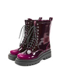 Trendy Bright Ombre Purple Platform Heel Lace Up Zipper Short Boots