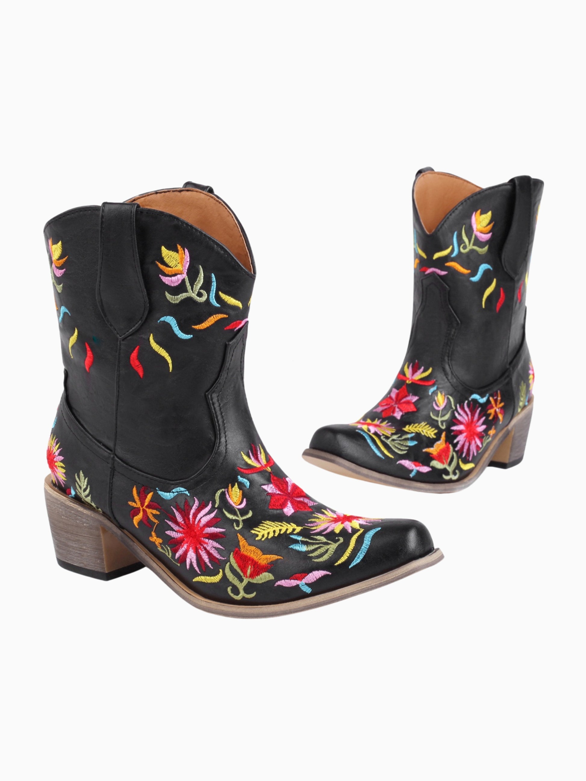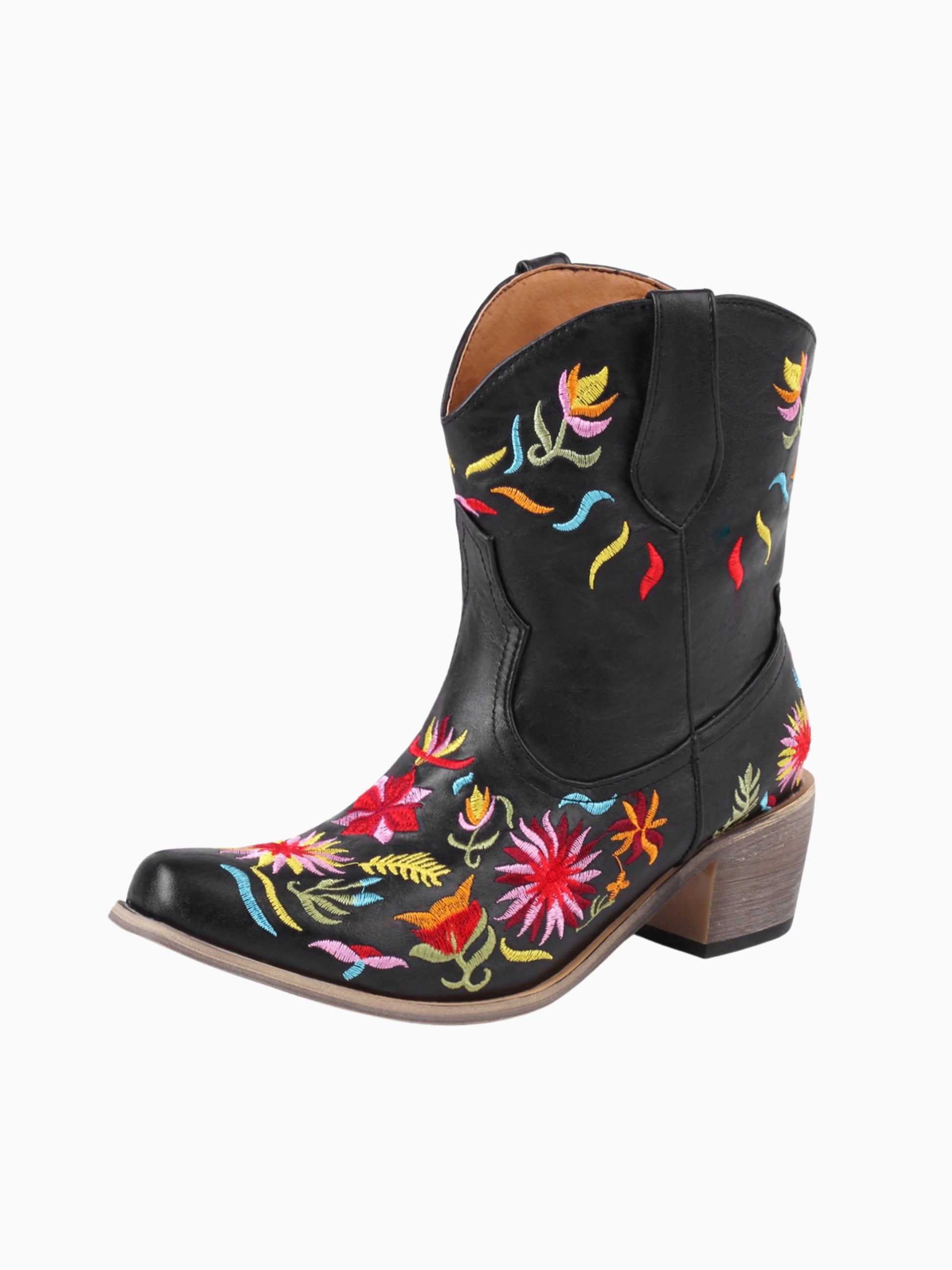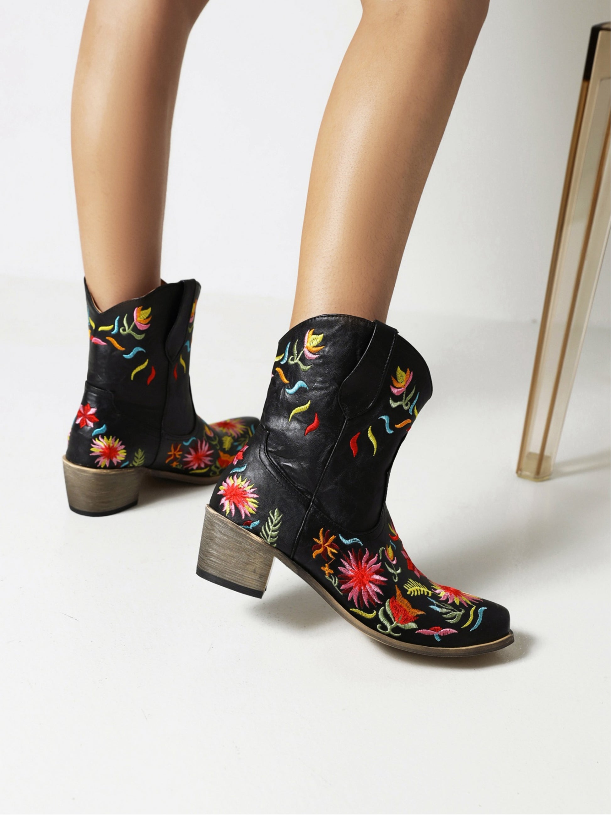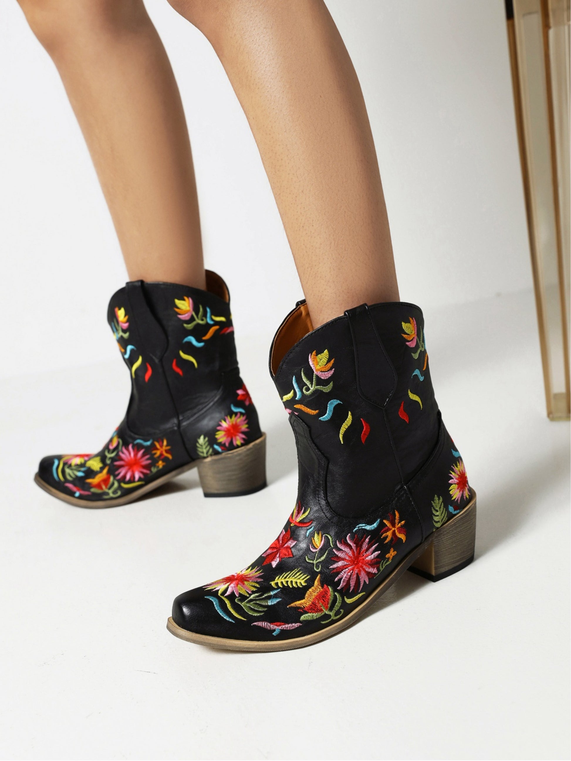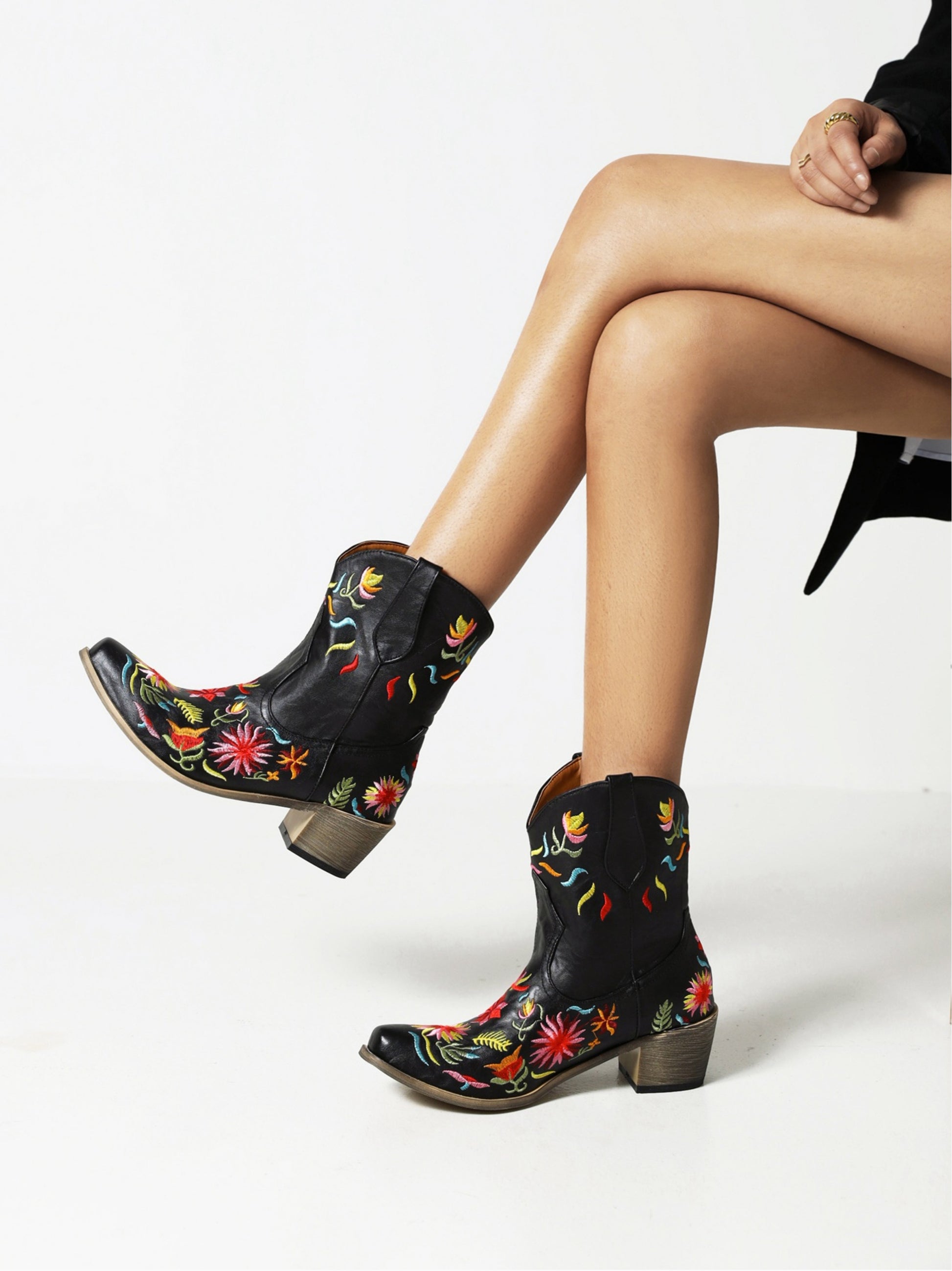 Vibrant Embroidered Cowgirl Boots with Flowers