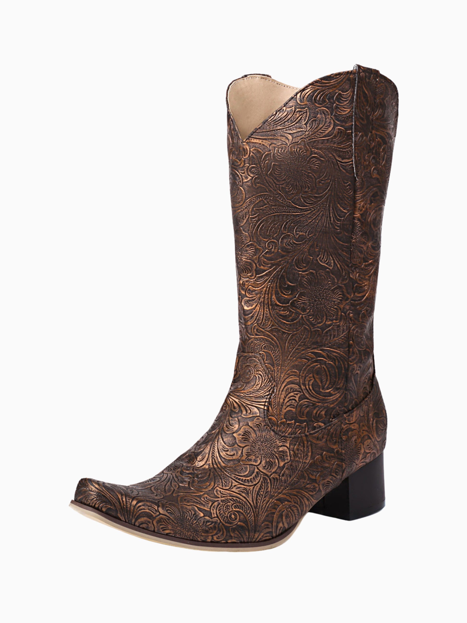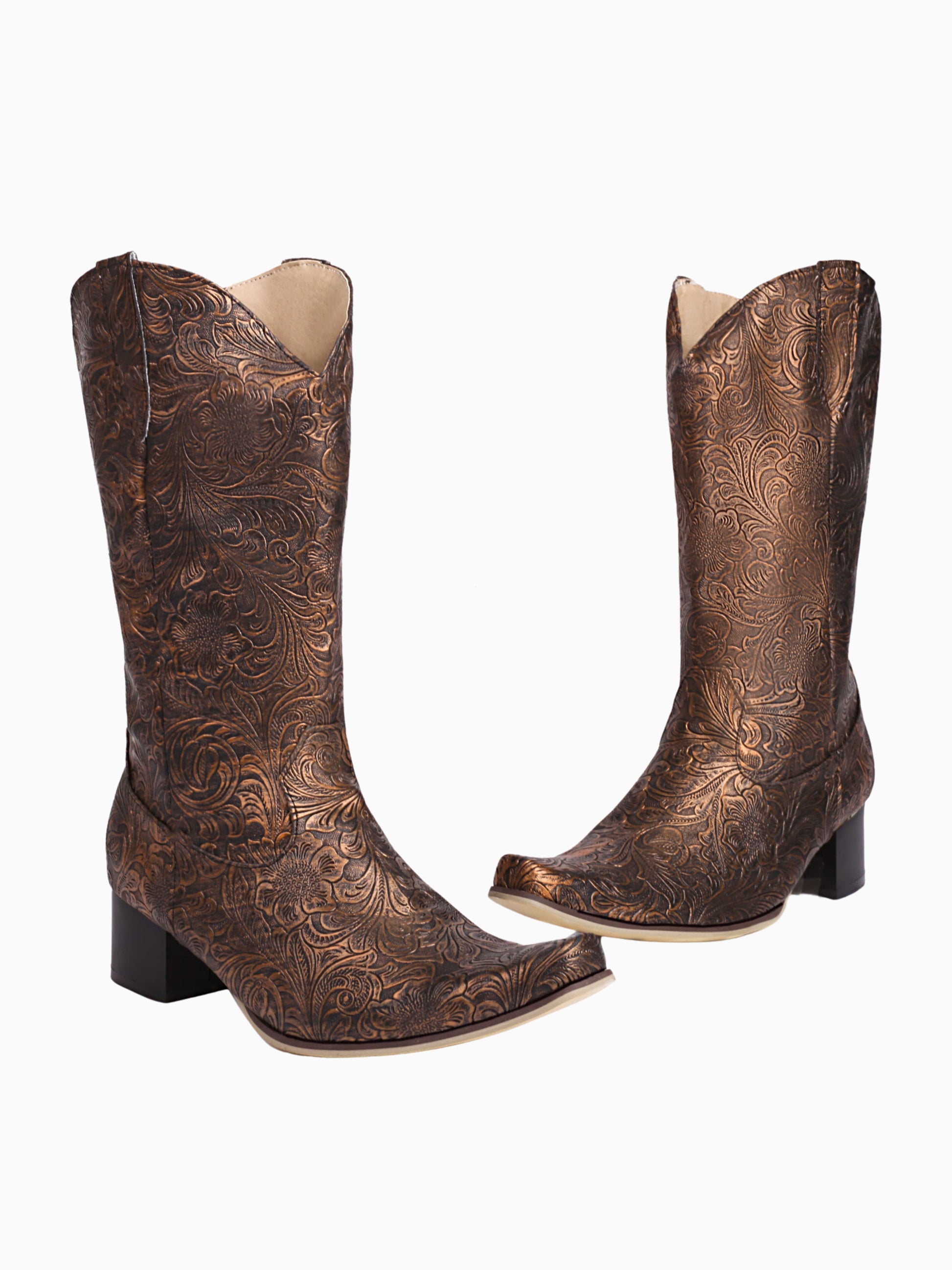 Vintage Engraved Chelsa Bronze Cowboy Boots