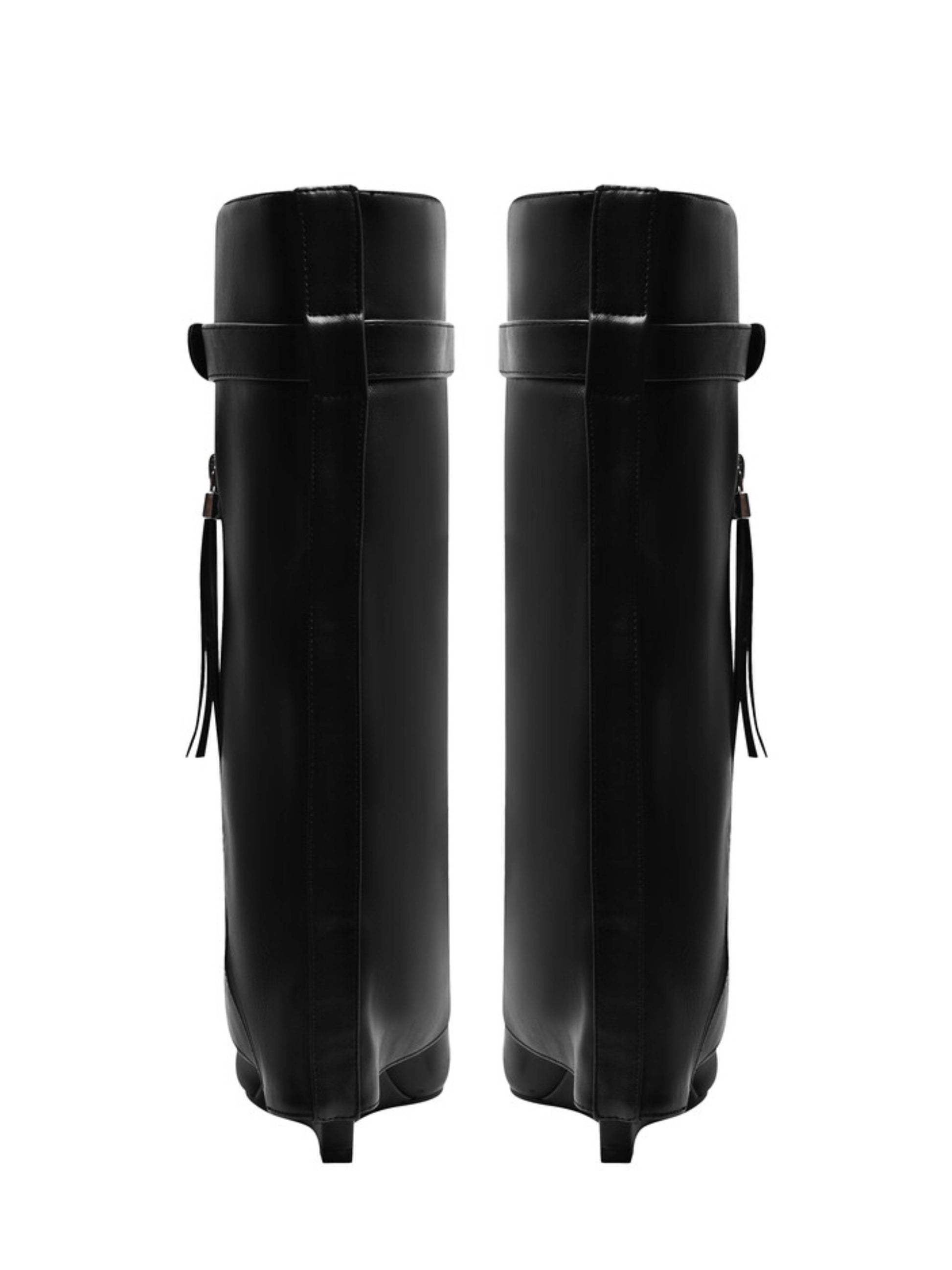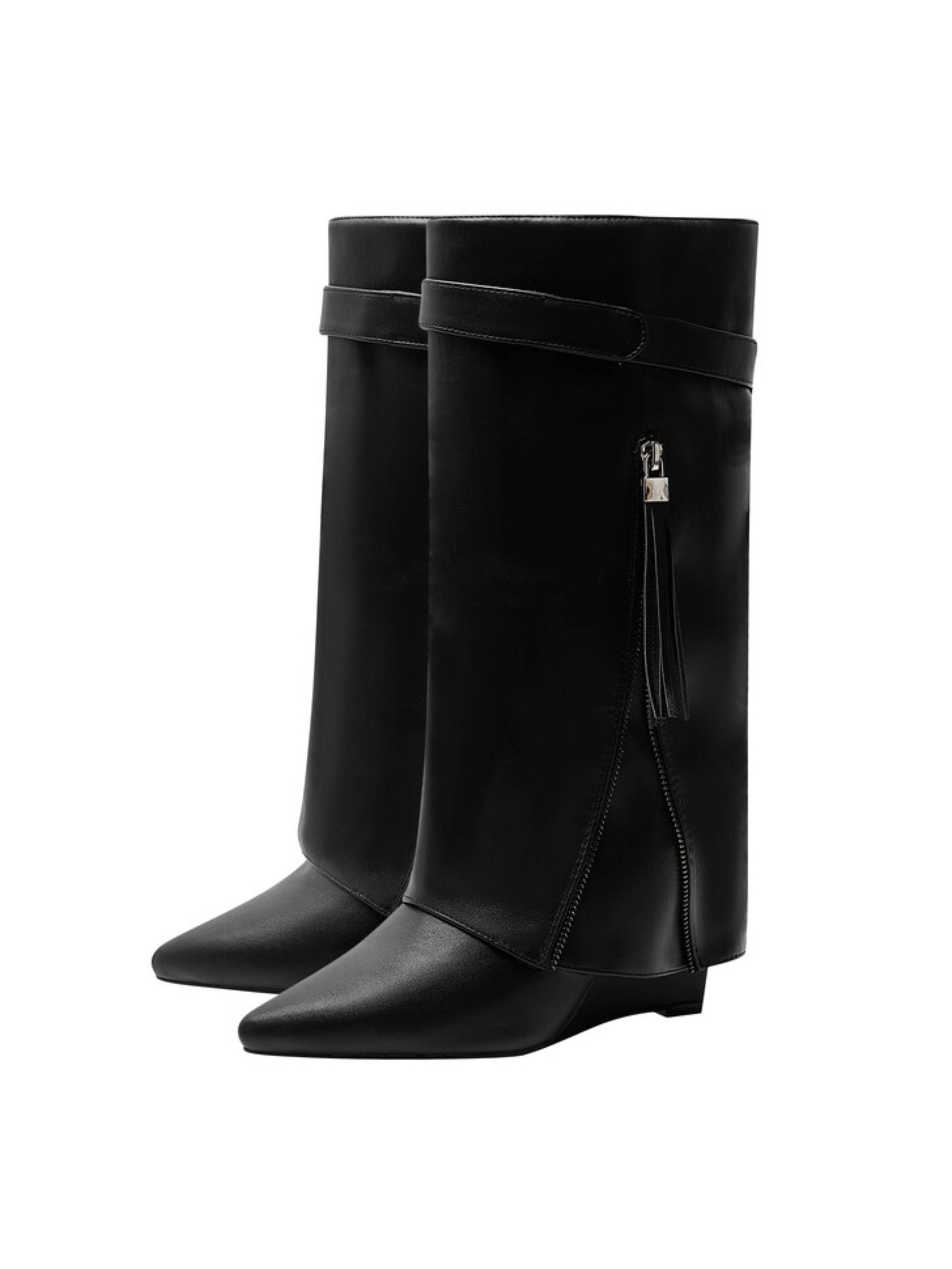 Women‘s Black Fold Over Tall Boots Wedge High Heel with Pointed Toe