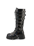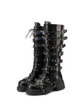 Women's Buckled Lace-Up Rivets Black Tall Gothic Boots